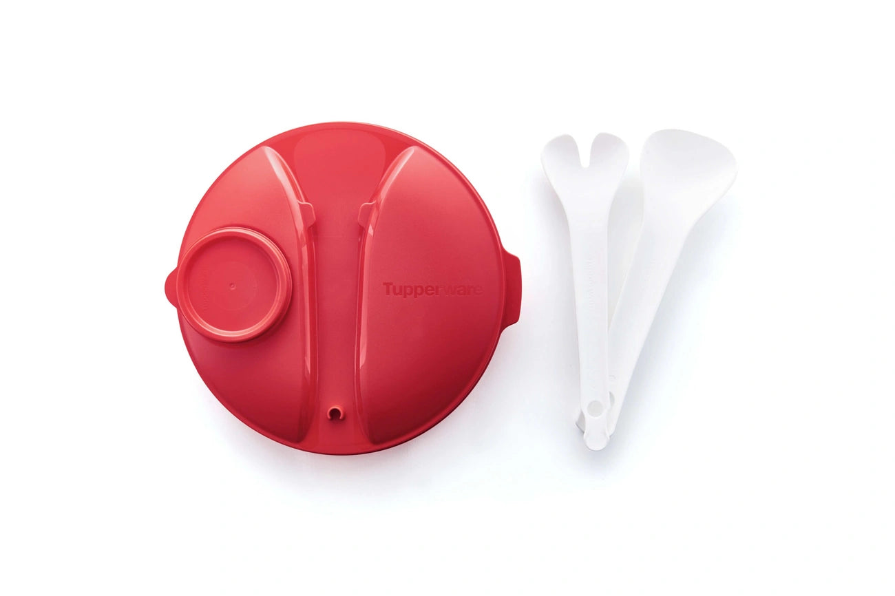 Mit dem großen Salat & Go Deckel erfährt das Salat-Karussell 2 ein Upgrade, denn so wird die Schüssel des Salat-Karussells ideal für den Transport von Salat zu einem Familienausflug, einem Picknick oder einer Grill-/Gartenparty. Alles ist kompakt mit dabei: Behälter für Salat-Dressing und Salatbesteck sind im Deckel integriert und können nach dem Essen verschmutzt in der Schüssel verstaut und nach Hause transportiert werden.
